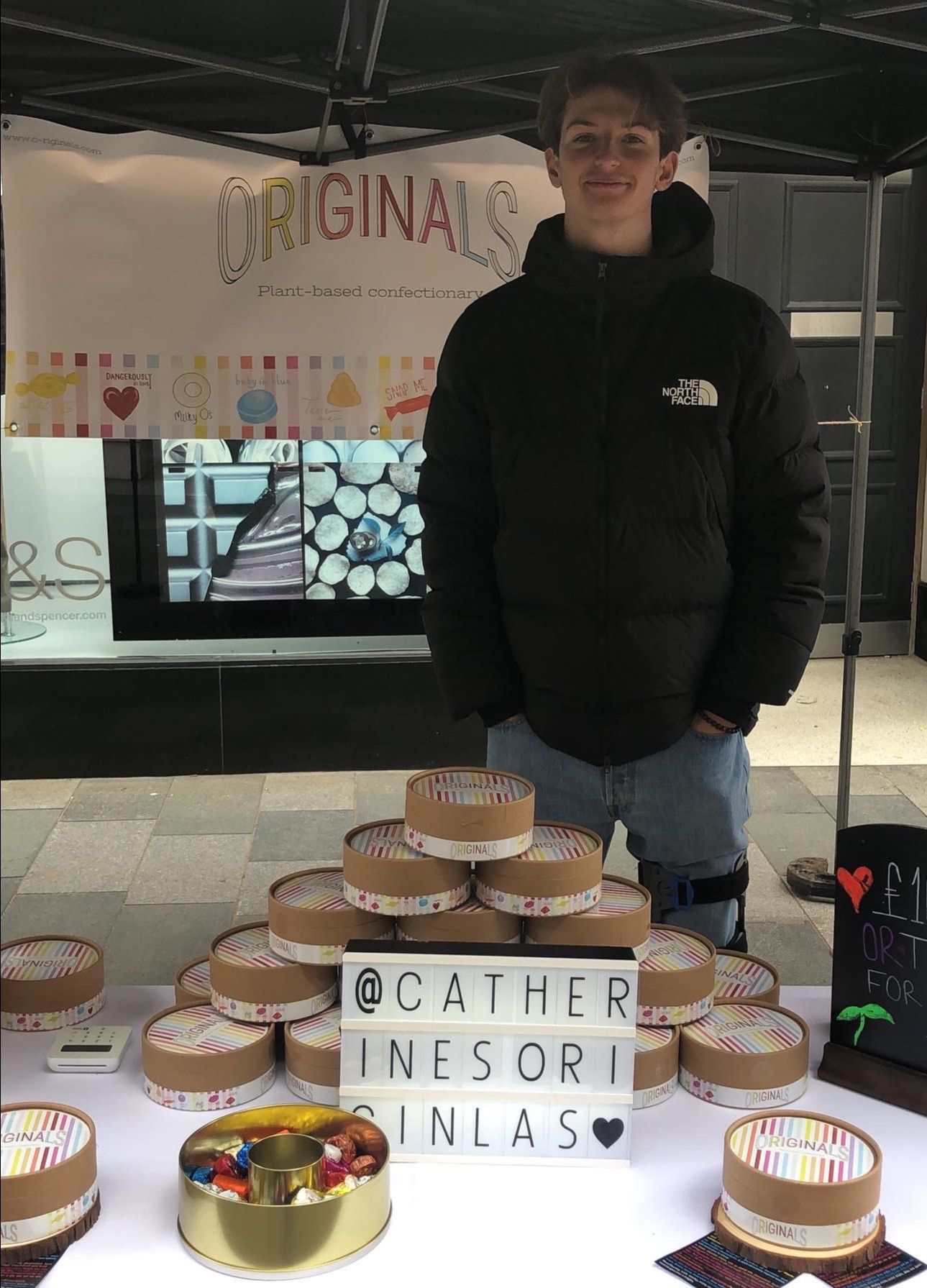 Two rainy days at Brightonās Christmas market, a Monday and Tuesday. Practically empty. Our stand was a white camping table. No tablecloth. We had brown cardboard boxes with a basic circular sticker. The chocolates tasted⦠okay. But they sold.