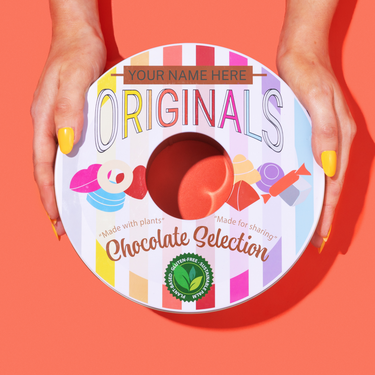 Catherine's perfect Christmas gift for all choco lovers! A chocolate selection tin (with an option to personalise by engraving the name of your loved one) packed with approximately 81 delectable vegan chocolate treats, featuring our original nine flavours and delivered in good time for Christmas!